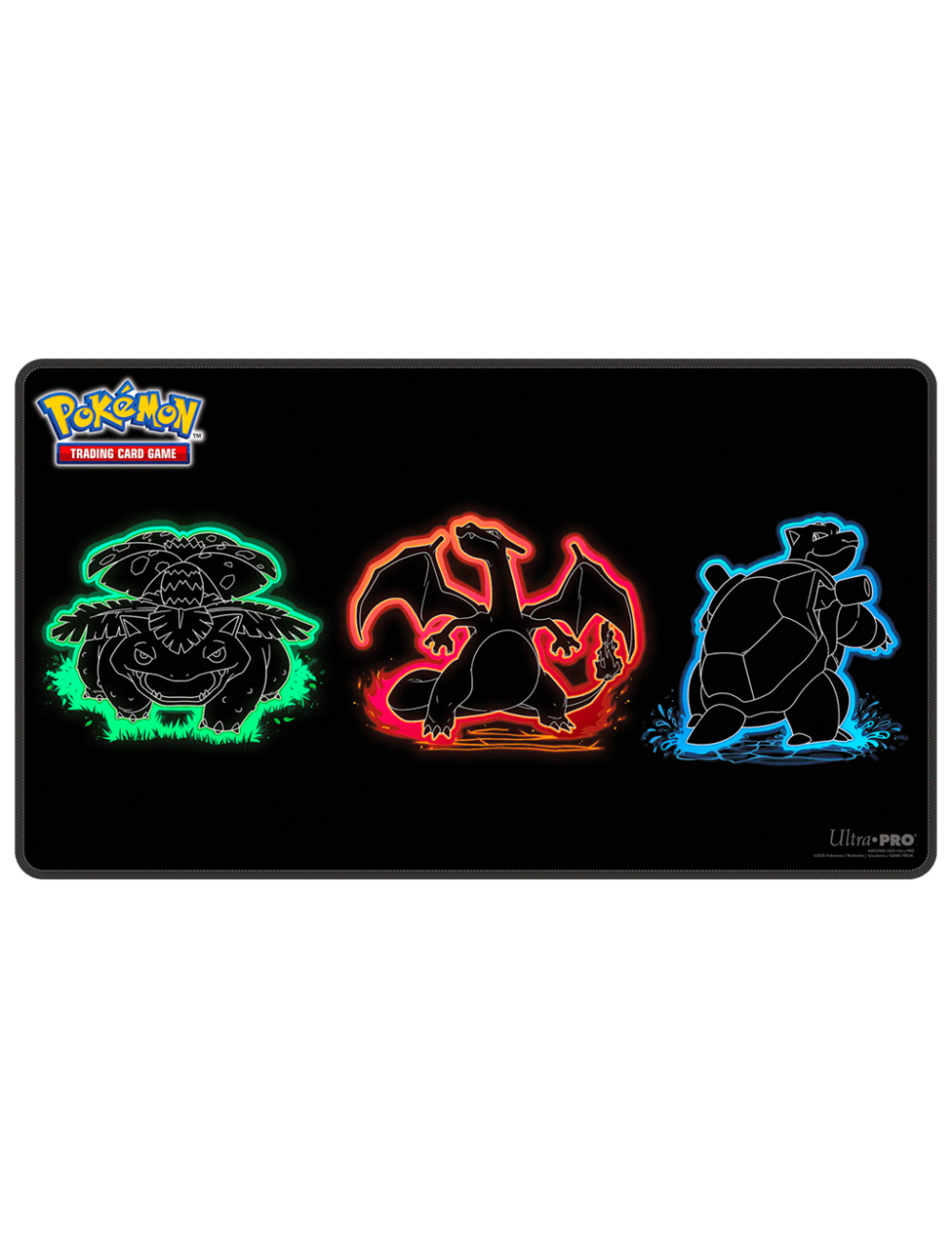 Make it a game to remember with Foil Playmats for the Pokémon Trading Card Game! With bold, neon-inspired artwork of Venusaur, Charizard, and Blastoise, this playmat features premium spot foil accents for added shine. Made with a soft fabric top to reduce damage to cards during play and a non-slip rubber backing to keep the playmat from shifting during use, playmats enhance the gameplay experience. With dimensions of approximately 24 in. x 13.5 in., a playmat also makes an excellent oversized mousepad for home or office.
